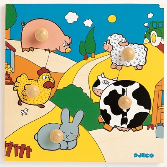 Reposition the 5 farm animals in the right place and you win ! Piece count : 5 pieces. Dimensions : 25 cm x 25 cm x 2.8 cm.