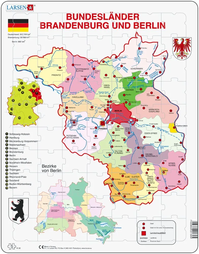 Home > Jigsaw Puzzles - World Maps and Mappemonde > Puzzle Cadre - Bundesland : Brandenburg und Berlin (en Allemand)