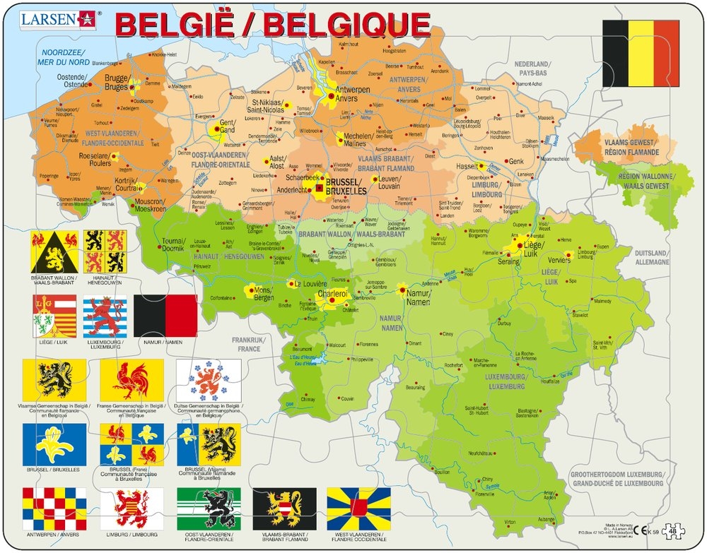 Home > Jigsaw Puzzles - World Maps and Mappemonde > Puzzle Cadre - Carte de la Belgique (en Français et Flamand)
