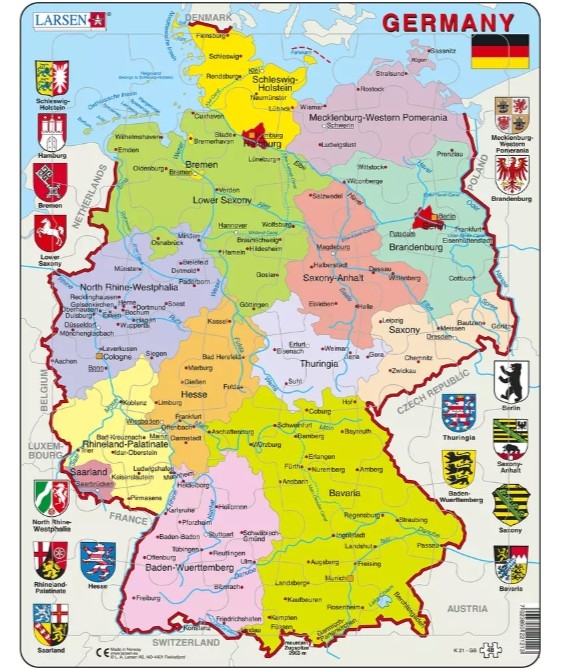 Home > Jigsaw Puzzles - Educative and playful > Puzzle Cadre - Carte de l'Allemagne (en Anglais)
