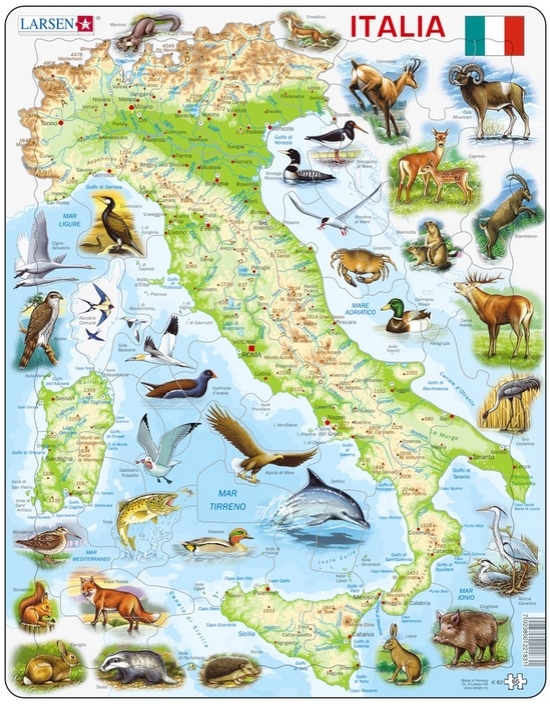 Home > Jigsaw Puzzles - World Maps and Mappemonde > Puzzle Cadre - Carte de l'Italie avec ses Animaux (en Italien)